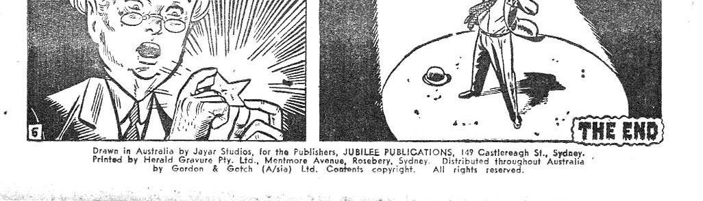 Drawn in Australia by Jayar Studios, for the publishers, Jubilee Publications, 149 Castlereagh St., Sydney. Printed by Herald Gravure Pty. Ltd., Mentmore Avenue, Roseberry, Sydney. Distributed throughout Australia by Gordon & Gotch (A/sia) Ltd. Contents copyright. All rights reserved.