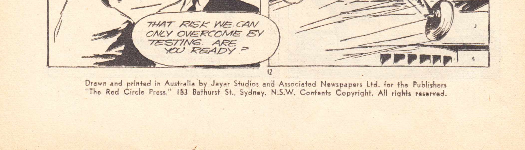 Fighting Fleet Comics published every month. Drawn and printed in Australia by Jayar Studios and Associated Newspapers Ltd. for the Publishers "The Red Circle Press," 153 Bathurst St., Sydney, N.S.W. Contents Copyright. All rights reserved. Sole Australian Distributors: Consolidated Press Ltd. All States.