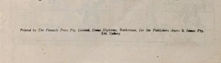 Printed by The Pinnacle Press Pty. Limited, Hume Highway, Bankstown, for the Publishers Ayers & James Pty. Ltd. Sydney.