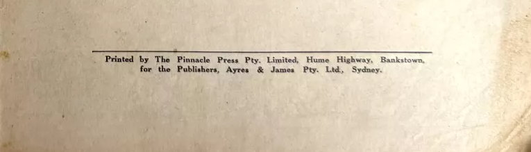 Printed by The Pinnacle Press Pty. Limited, Hume Highway, Bankstown, for the Publishers, Ayers & James Pty. Ltd., Sydney.