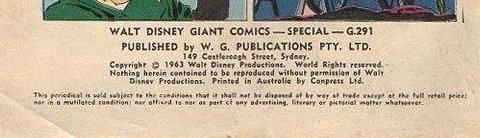Walt Disney Giant Comics--Special--G.291. Published by W. G. Publications Pty. Ltd. 149 Castlereagh Street, Sydney. Copyright © 1963 Walt Disney Productions. World rights reserved. Nothing herin contained to be reproduced without permission of Walt Disney Productions. Printed in Australia by Conpress Ltd.