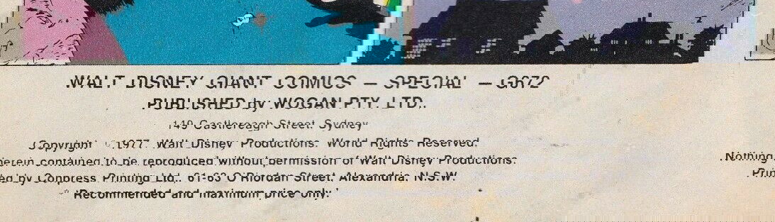 Walt Disney Giant Comics -- Special -- G672. Published by Wogan Pty. Ltd., 149 Castlereagh street, Sydney. Copyright © 1977. Walt Disney Productions. World Rights Reserved. Printed by Conpress Printing Ltd., 61-63 O'Riordan Street, Alexandria, N.S.W.