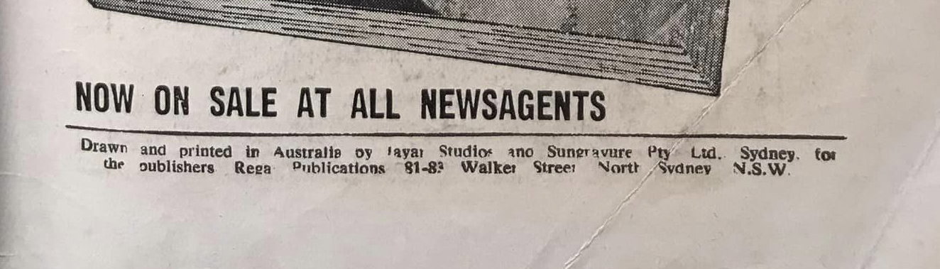 Drawn and printed in Australia by Jayar Studios and Sungravure Pty. Ltd., Sydney, for the publishers Regal Publications, 81-83 Walker Street, North Sydney, N.S.W.
