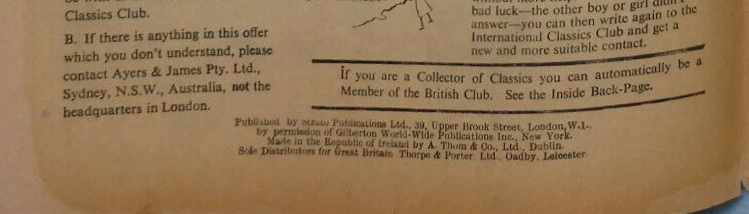 An Australian variant with Ayers & James advertising has been confirmed for this issue.