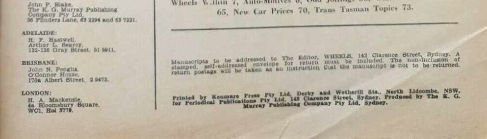 Printed by Kenmure Press Pty Ltd, Derby and Wetherill Sts., North Lidcombe, NSW, for Periodical Publications Pty Ltd, 142 Clarence Street, Sydney. Produced by the K. G. Murray Publishing Company Pty Ltd, Sydney.