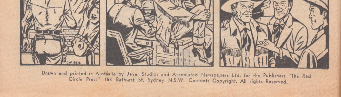 Drawn and printed in Australia by Jayar Studios and Associated Newspapers Ltd. For the Publishers "The Red Circle Press" 153 Bathurst St. Sydney N.S.W. Contents Copyright. All rights reserved. Sole Australian distributors: Consolidated Press Ltd. All States.