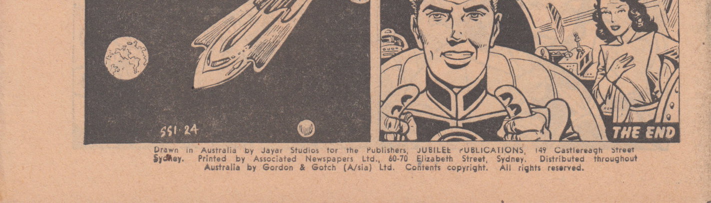 Drawn in Australia by Jayar Studions for the Publishers Jubilee Publications, 149 Castlereagh Street, Sydney. Printed by Associated Newspapers Ltd., 60-70 Elizabeth Street, Sydney. Distributed throughout Australia by Gordon & Gotch (A/sia) Ltd. Contents copyright. All rights reserved.
