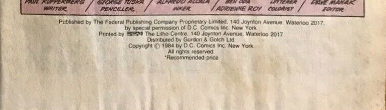 Copyright © 1984 by D. C. Comics Inc. New York.
