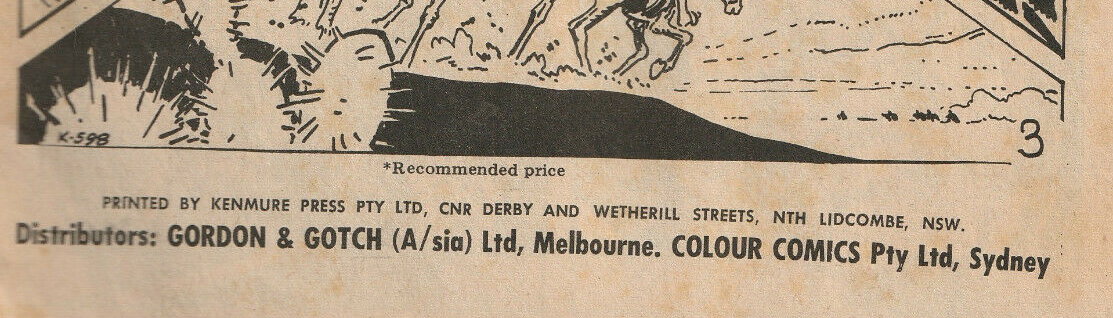 Printed by Kenmure Press Pty Ltd, cnr Derby and Wetherill Streets Nth Lidcombe, NSW, for the Proprietors Colour Comics Pty Ltd, Sydney, and produced by The K. G. Murray Publishing Company Pty Ltd, 142 Clarence Street, Sydney. Gordon & Gotch (A/sia) Ltd, distributors for Australia and New Zealand. Sequences in this issue Copyright National Periodical Publications Inc.
