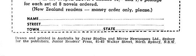 Drawn and printed in Australia by Jayar Studios and Mirror Newspapers Ltd., Sydney for the publishers, Junior Readers' Press, 81-83 Walker Street, North Sydney, N.S.W.