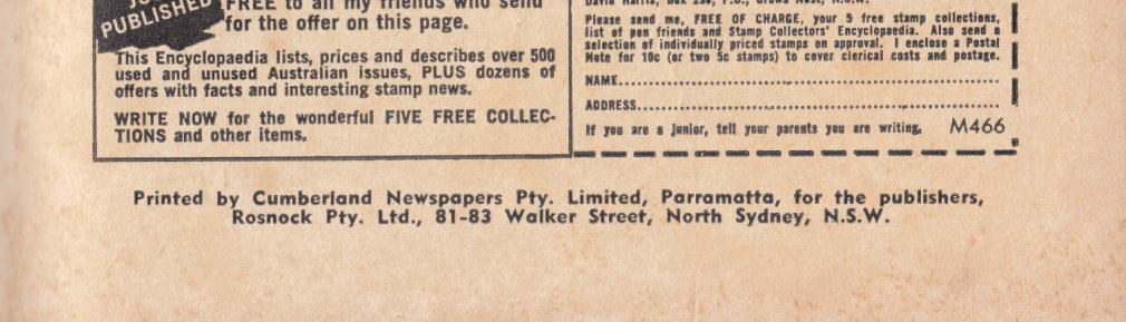 Printed by Cumberland Newspapers Pty. Limited, Parramatta, for the publishers, Rosnock Pty. Ltd., 81-83 Walker Street, North Sydney, N.S.W.