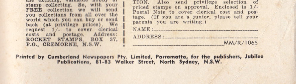 Printed by Cumberland Newspapers Pty. Limited, Parramatta, for the publishers, Jubilee Publications, 81-83 Walker Street, North Sydney, N.S.W.