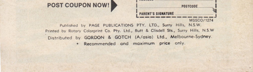 Published by Page Publications Pty. Ltd., Surry Hills, N.S.W. Printed by Rotary Colorprint Co. Pty. Ltd., Butt & Clisdell Sts., Surry Hills, N.S.W. Distributed by Gordon & Gotch (A/asia) Ltd., Melbourne-Sydney.