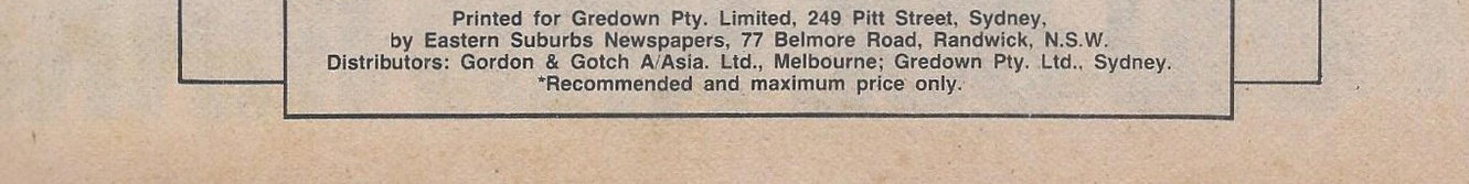 Printed for Gredown Pty. Limited, 249 Pitt Street, Sydney, by Eastern Suburbs Newspapers, 77 Belmore Road, Randwick, N.S.W. Distributors: Gordon & Gotch A/Asia. Ltd., Melbourne; Gredown Pty. Ltd., Sydney.