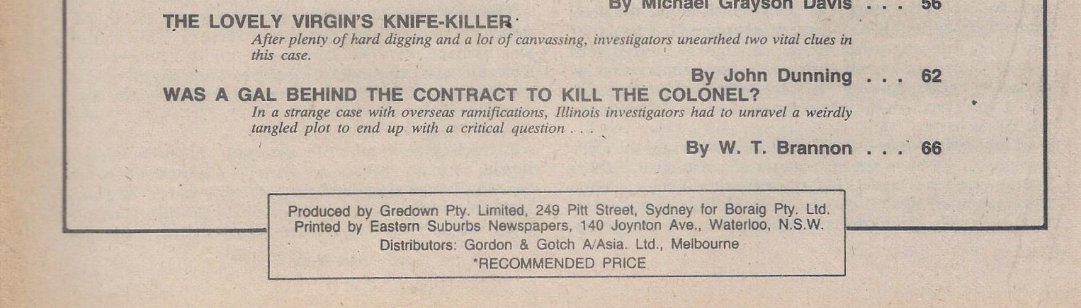 Produced by Gredown Pty. Limited, 249 Pitt Street, Sydney for Boraig Pty. Ltd. Printed by Eastern Suburbs Newspapers, 140 Joynton Ave., Waterloo, N.S.W. Distributors: Gordon & Gotch A/Asia. Ltd., Melbourne.