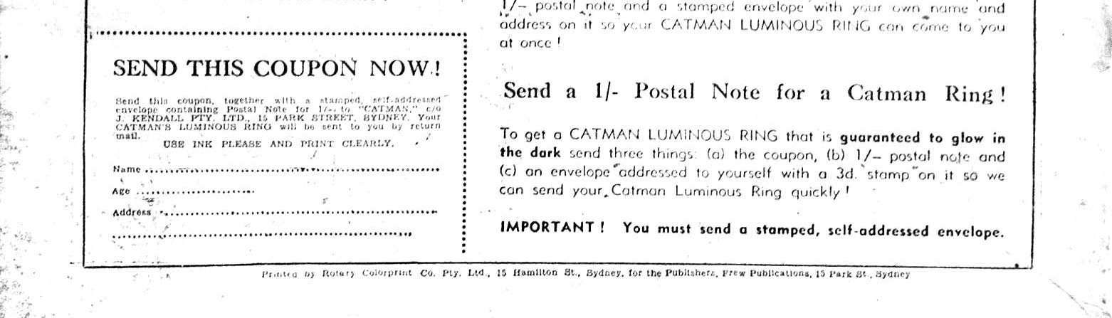 Printed by Rotary Colorprint Co. Pty. Ltd., 15 Hamilton St., Sydney, for the Publishers, Frew Publications, 15 Park St., Sydney.