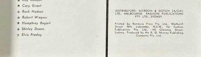 Printed by Kenmure Press Pty. Ltd., Wetherill Street, Nth Lidcombe, N.S.W., for Fashion Publications Pty. Ltd., 142 Clarence Street, Sydney. Produced by the K. G. Murray Publishing Company Pty. Ltd. Distributors: Gordon & Gotch (A/sia) Ltd., Melbourne, Fasion Publications Pty. Ltd., Sydney.