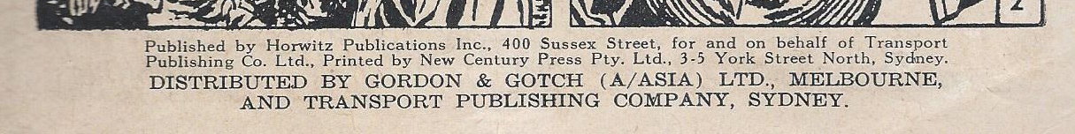 Published by Horwitz Publications Inc., 400 Sussex Street, for and on behalf of Transport Publishing Co. Ltd., Printed by New Century Press Pty. Ltd., 3-5 York Street North, Sydney. Distributed by Gordon & Gotch (A/Asia) Ltd., Melbourne, and Transport Publishing Company, Sydney.