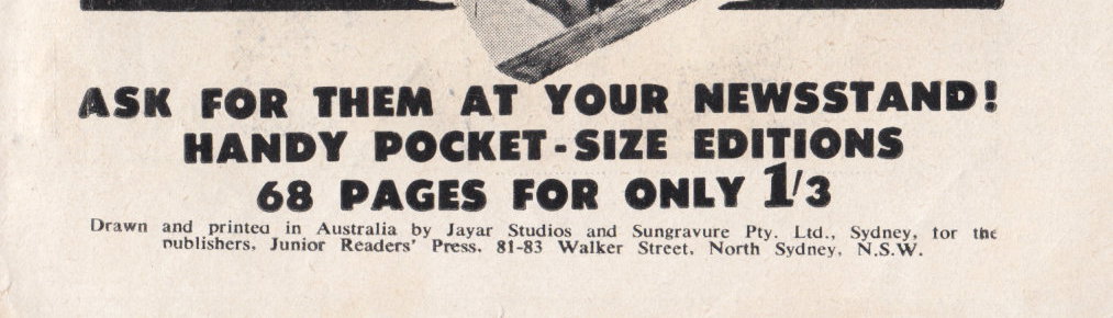 Drawn and printed in Australia by Jayar Studios and Sungravure Pty. Ltd., Sydney, for the publishers, Junior Readers' Press. 81-83 Walker Street, North Sydney, N.S.W. Distributed by Gordon & Gotch (A/sia) Ltd., Melbourne. All names used throughout are fictitious and do not refer to any person living or dead.