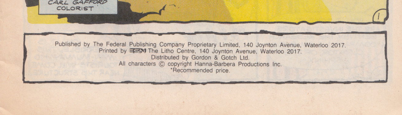 Published by The Federal Publishing Company Proprietary Limited, 140 Joynton Avenue, Waterloo 2017. Printed by ESN The Litho Centre, 140 Joynton Avenue, Waterloo 2017. Distributed by Gordon & Gotch Ltd. All characters © copyright Hanna-Barbera Productions Inc.