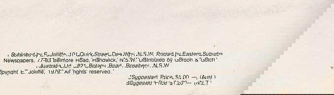 Published by E. Jolliffe, 101 Quirk Street, Dee Why, N.S.W. Printed by Eastern Suburbs Newspapers, 77-83 Belmore Road, Randwick, N.S.W. Distribute by Gordon & Gotch Australia Ltd., 821 Botany Road, Rosebery, N.S.W. © Copyright E. Jolliffe, 1979. All rights reserved.