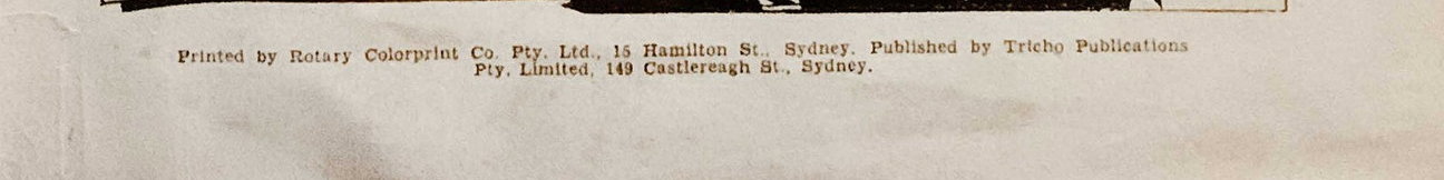 Printed by Rotary Colorprint Co. Pty. Ltd., 15 Hamilton St., Sydney. Published by Tricho Publications Pty. Limited, 149 Castlereagh St., Sydney.