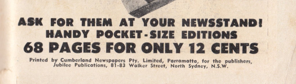 Printed by Cumberland Newspapers Pty. Limited, Parramatta, for the publishers, Jubilee Publications, 81-83 Walker Street, North Sydney, N.S.W.