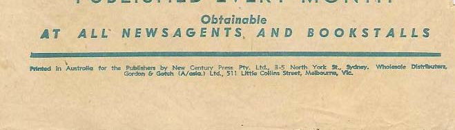 Printed in Australia for the Publishers by New Century Press Pty. Ltd., 3-5 North York St., Sydney. Wholesale distributors, Gordon & Gotch (A/asia.) Ltd., 511 Little Collins Street, Melbourne, Vic.