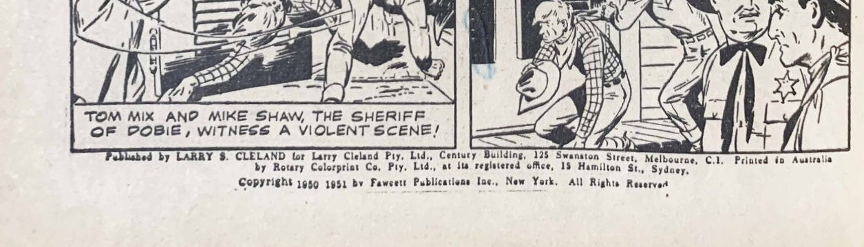 Published by Larry S. Cleland for Larry Cleland Pty. Ltd., Century Building, 125 Swanston Street, Melboune, C.1. Printed in Australia by Rotary Colorprint Co. Pty. Ltd., at its registered office, 15 Hamilton St., Sydney. Copyright 1950 1951 by Fawcett Publications Inc., New York, All rights reserved.