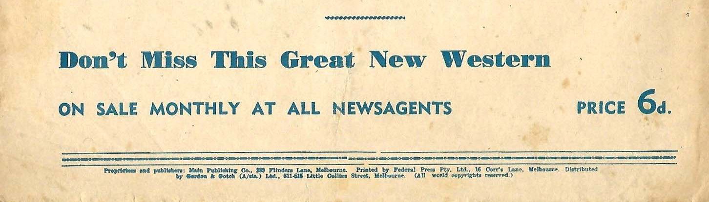Proprietors and publishers: Main Publishing Co., 289 Flinders Lane, Melbourne. Printed by Federal Press Pty. Ltd., 16 Corr's Lane, Melbourne. Distributed by Gordon & Gotch (A/sia) Ltd., 511-515 Little Collins Street, Melbourne. (All world copyrights reserved.)