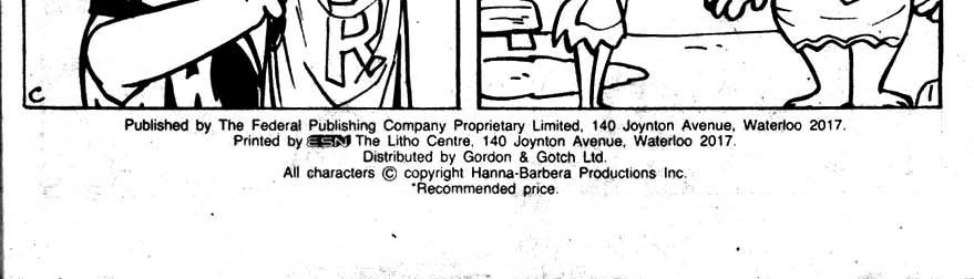 Published by The Federal Publishing Company Proprietary Limited, 140 Joynton Avenue, Waterloo 2017. Printed by ESN The Litho Centre, 140 Joynton Avenue, Waterloo 2017. Distributed by Gordon & Gotch Ltd. All characters © copyright Hanna-Barbera Productions Inc.