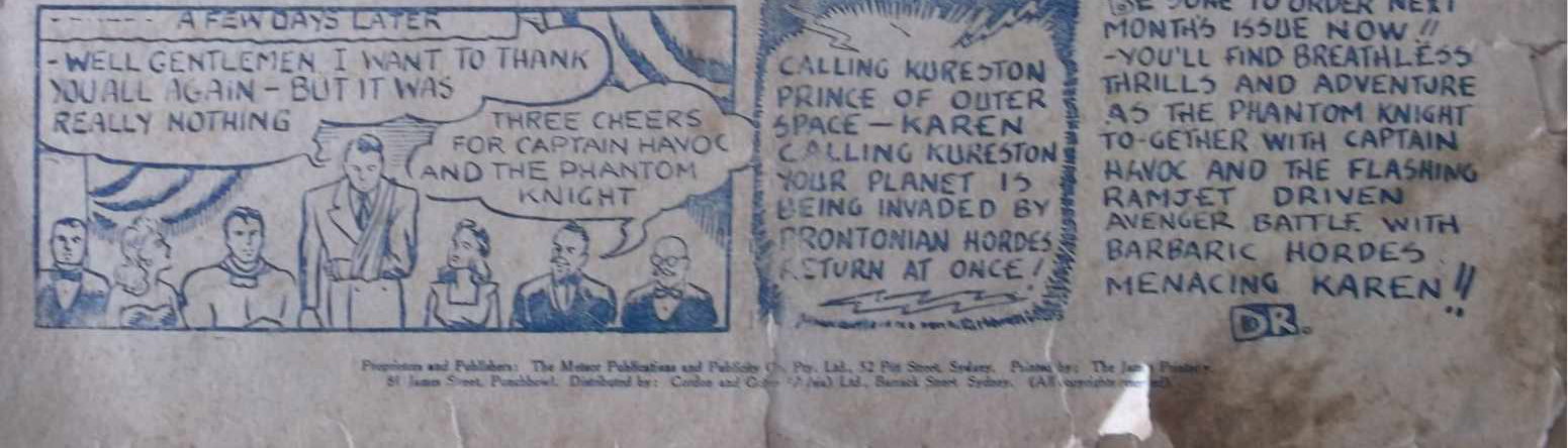 Proprietors and publishers: The Meteor Publications and Publicity Co. Pty. Ltd., 52 Pitt Street, Sydney. Printed by: The James Printery, 81 James Street, Punchbowl. Distributed by: Gordon and Gotch (A/sia) Ltd., Barrack Street, Sydney. (All copyrights reserved)