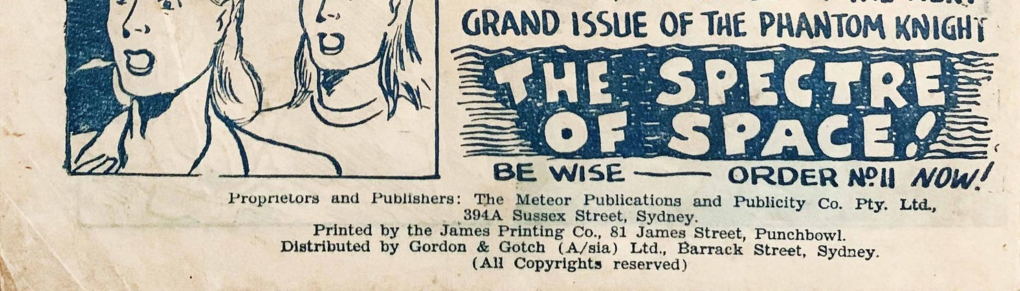 Proprietors and Publishers: The Meteor Publications and Publicity Co. Pty. Ltd., 394A Sussex Street, Sydney. Printed by the James Printing Co., 81 James Street, Punchbowl. Distributed by Gordon & Gotch (A/sia) Ltd., Barrack Street, Sydney (All Copyrights reserved).