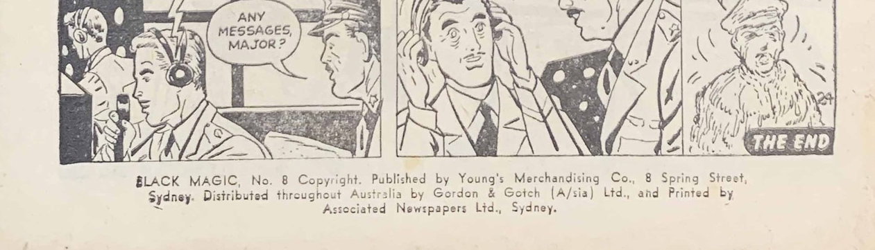 Black Magic No. 8 Copyright. Published by Young's Merchandising Co., 8 Spring Street, Sydney. Distributed throughout Australia by Gordon & Gotch (A/sia) Ltd., and Printed by Associated Newsspapers Ltd., Sydney.