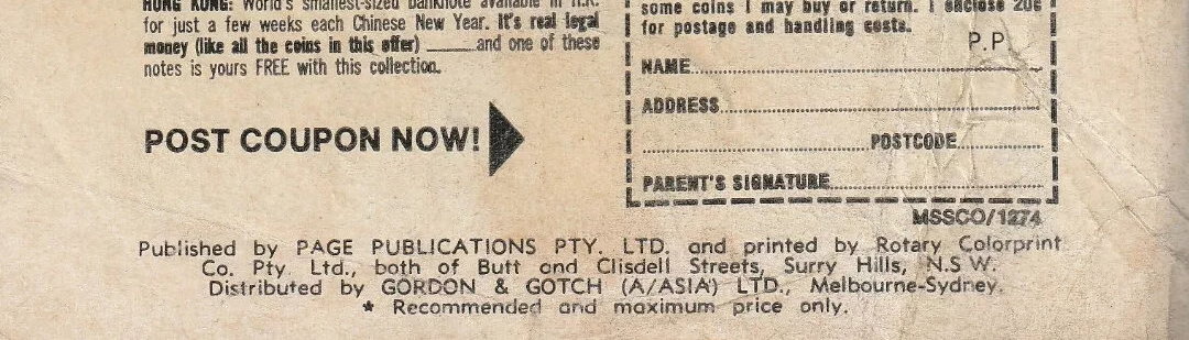 Published by Page Publications Pty. Ltd., Surry Hills, N.S.W. Printed by Rotary Colorprint Co. Pty. Ltd., Butt & Clisdell Sts, Surry Hills, N.S.W. Distributed by Gordon & Gotch (A/asia) Ltd., Sydney.