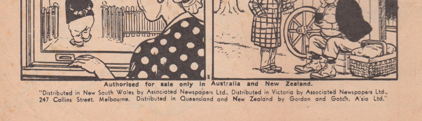 Drawn and printed in Australia by Jayar Studios and Sungravure Ltd. For the Publishers, The Red Circle Press, 149 Castlereagh St., Sydney. Contents copyright. All rights reserved. Distributed throughout Australia by Associated Newspapers Ltd., Sydney. All names throughout are fictitious and do not refer to any living person. Authorised for sale only in Australia and New Zealand. Distributed in New South Wales by Associated Newspapers Ltd., Distributed in Victoria by Associated Newspapers Ltd., 247 Collins Street, Melbourne. Distributed in Queensland and New Zealand by Gordon and Gotch, A'sia Ltd.