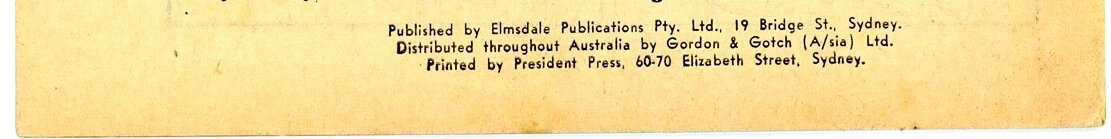 Published by Elmsdale Publications Pty. Ltd., 19 Bridge St., Sydney. Distributed throughout Australia by Gordon & Gotch (A/sia) Ltd. Printed by Presidential Press, 60-70 Elizabeth Street, Sydney.