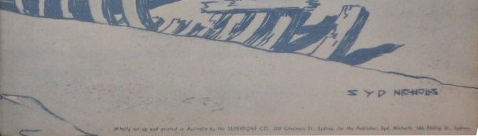 Wholly set up and printed in Australia by Supertone Co., 200 Chalmers St., Sydney for the Publishers, Syd Nicholls, 164 166 Philip St, Sydney.