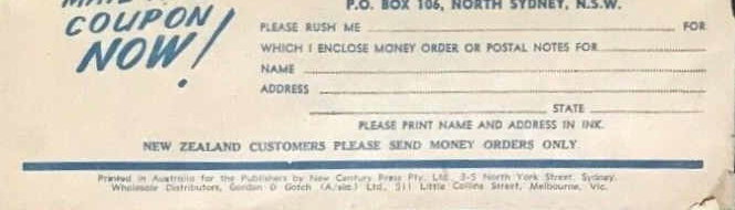 Printed in Australia for the Publishers by New Century Press Pty. Ltd., 3-5 North York Street, Sydney. Wholesale Distributors, Gordon & Gotch (A/sia) Ltd., 511 Little Collins Street, Melbourne, Vic.