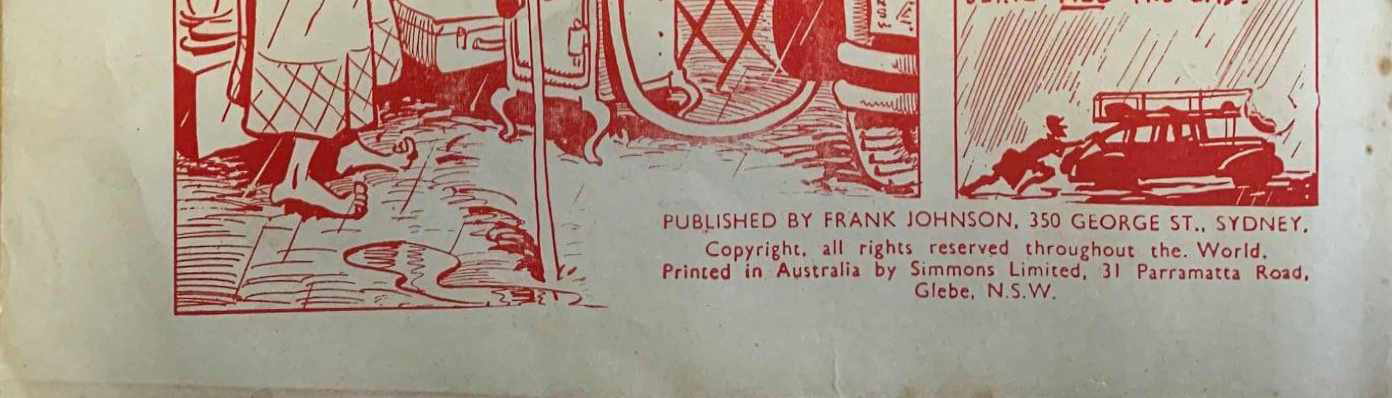 Published by Frank Johnson, 350 George St., Sydney. Copyright, all rights reserved throughout the world. Printed in Australia by Simmons Limited, 31 Parramatta Road, Glebe, N.S.W.
