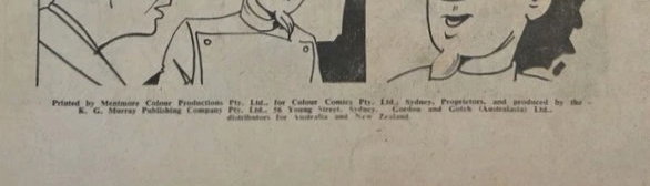 Printed by Mentmore Colour Productions Pty. Ltd., for Colour Comics Pty. Ltd., Sydney. Proprietors and produced by the K. G. Murray Publishing Company Pty. Ltd., 56 Young Street, Sydney. Gordon and Gotch (Australasia) Ltd., distributors for Australia & New Zealand.