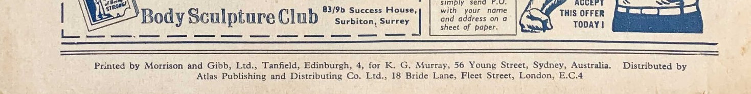 Printed by Morrison and Gibb, Ltd., Tanfield, Edinburgh, 4, for K. G. Murray, 56 Young Street, Sydney, Australia. Distributed by Atlas Publishing and Distributing Co. Ltd., 18 Bride Lane, Fleet Street, London, E.C.4