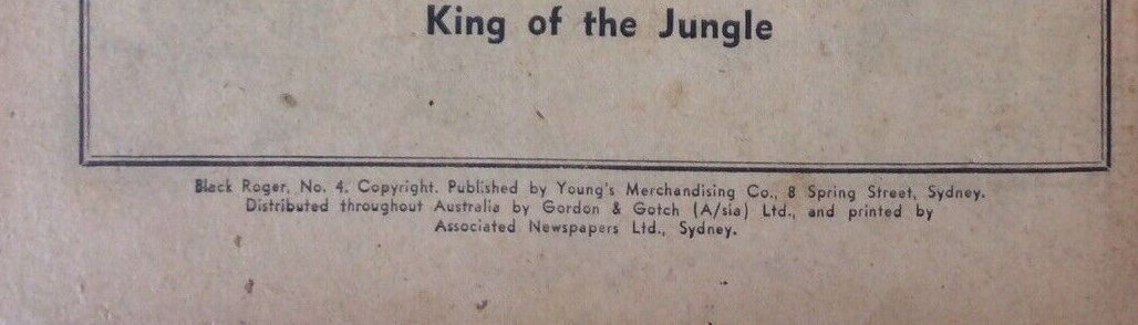 Black Roger No. 4. Copyright. Published by Young's Merchandising Co., 8 Spring Street, Sydney. Distributed throughout Australia by Gordon & Gotch (A/sia) Ltd., and printed by Associated Newspapers Ltd., Sydney.
