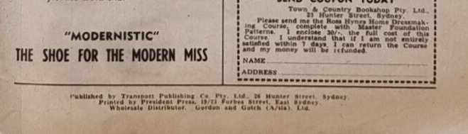 Published by Transport Publishing Co. Pty. Ltd., 26 Hunter Street, Sydney. Printed by President Press, 19/23 Forbes Street, East Sydney. Wholesale Distributor. Gordon and Gotch (A/sia) Ltd.