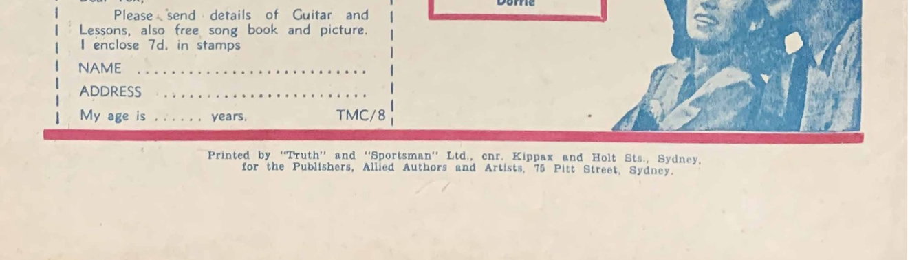 Printed by "Truth" and "Sportsman" Ltd., cnr. Kippax and Holt Sts., Sydney. for the Publishers, Allied Authors and Artists, 75 Pitt Street, Sydney.