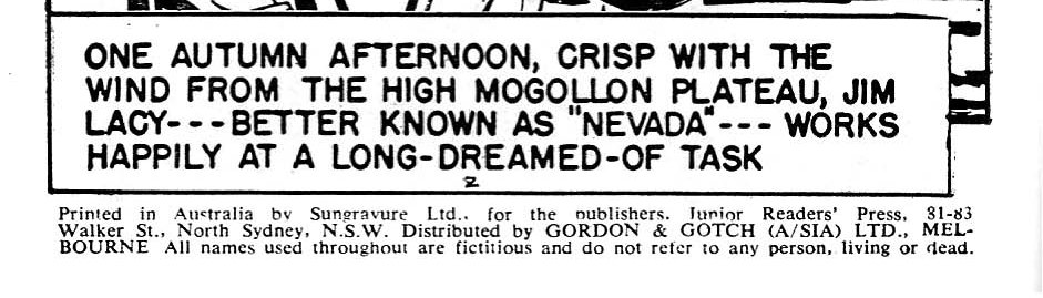 Printed in Australia by Sungravure Ltd., for the publishers Junior Readers' Press, 81-83 Walker St., North Sydney, N.S.W. Distributed by Gordon & Gotch (A/sia) Ltd., Melbourne. All names used throughout are fictitious and do not refer to any person, living or dead.