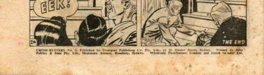 Crime-Busters No. 3. Published by Transport Publishing Co. Pty. Ltd., of 26 Hunter Street, Sydney. Printed by John Fairfax & Sons Pty. Ltd., Mentmore Avenue, Rosebery, Sydney. Wholesale Distributors: Gordon and Gotch (A'asia) Ltd.