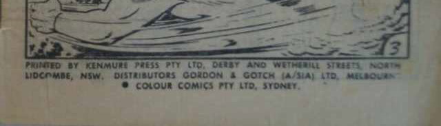 Printed by Kenmure Press Pty Ltd, cnr Derby and Wetherill Streets Nth Lidcombe, for the Proprietors Colour Comics Pty Ltd, Sydney, and produced by The K. G. Murray Publishing Company Pty Ltd, 142 Clarence Street, Sydney. Gordon & Gotch (A'sia) Ltd, distributors for Australia and New Zealand. Sequences in this issue Copyright National Periodical Publications Inc.