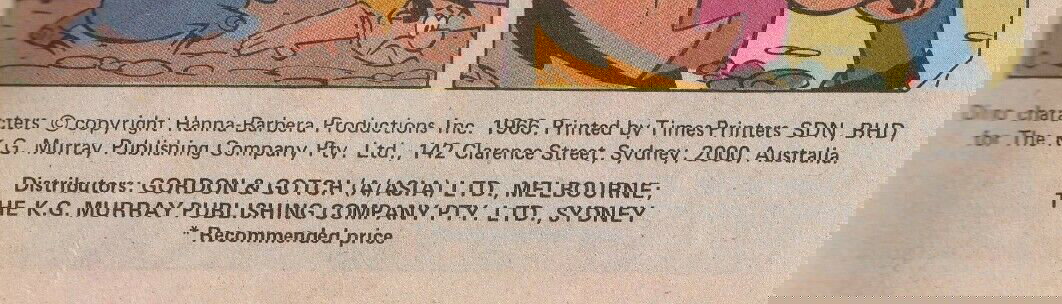 Dino characters © copyright Hanna-Barbera Productions Inc. 1966. Printed by Times Printers SDN, BHD, for The K.G. Murray Publishing Company Pty. Ltd., 142 Clarence Street, Sydney, 2000, Australia. Distributors: Gordon & Gotch (A/asia) Ltd., Melbourne; The K.G. Murray Publishing Company Pty. Ltd., Sydney.