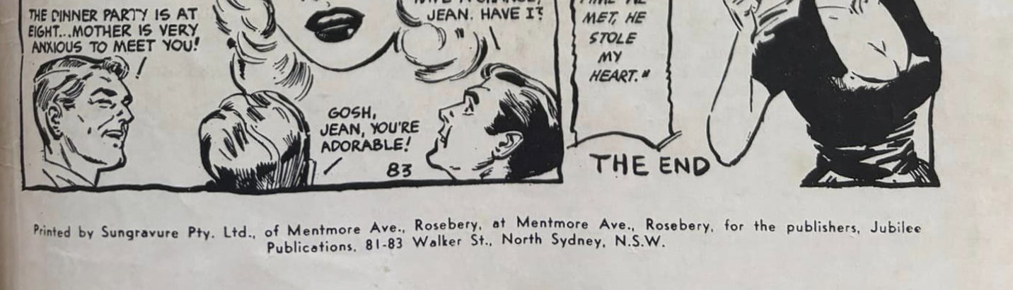 Printed by Sungravure Pty. Ltd., of Mentmore Ave., Rosebery, at Mentmore Ave., Rosebery, for the publishers Jubilee Publications, 81-83 Walker St., North Sydney. N.S.W.